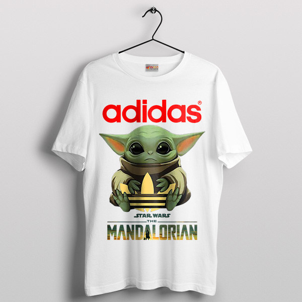 Adorable Force Grogu Holds The Adidas White T-shirt