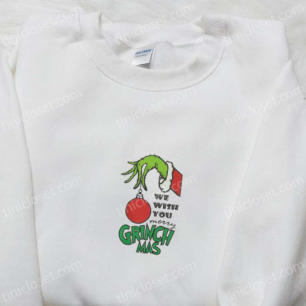 We Wish You Grinchmas Grinch Hand Embroidered Shirt, Christmas Embroidered Hoodie, Best Christmas Gifts For Family