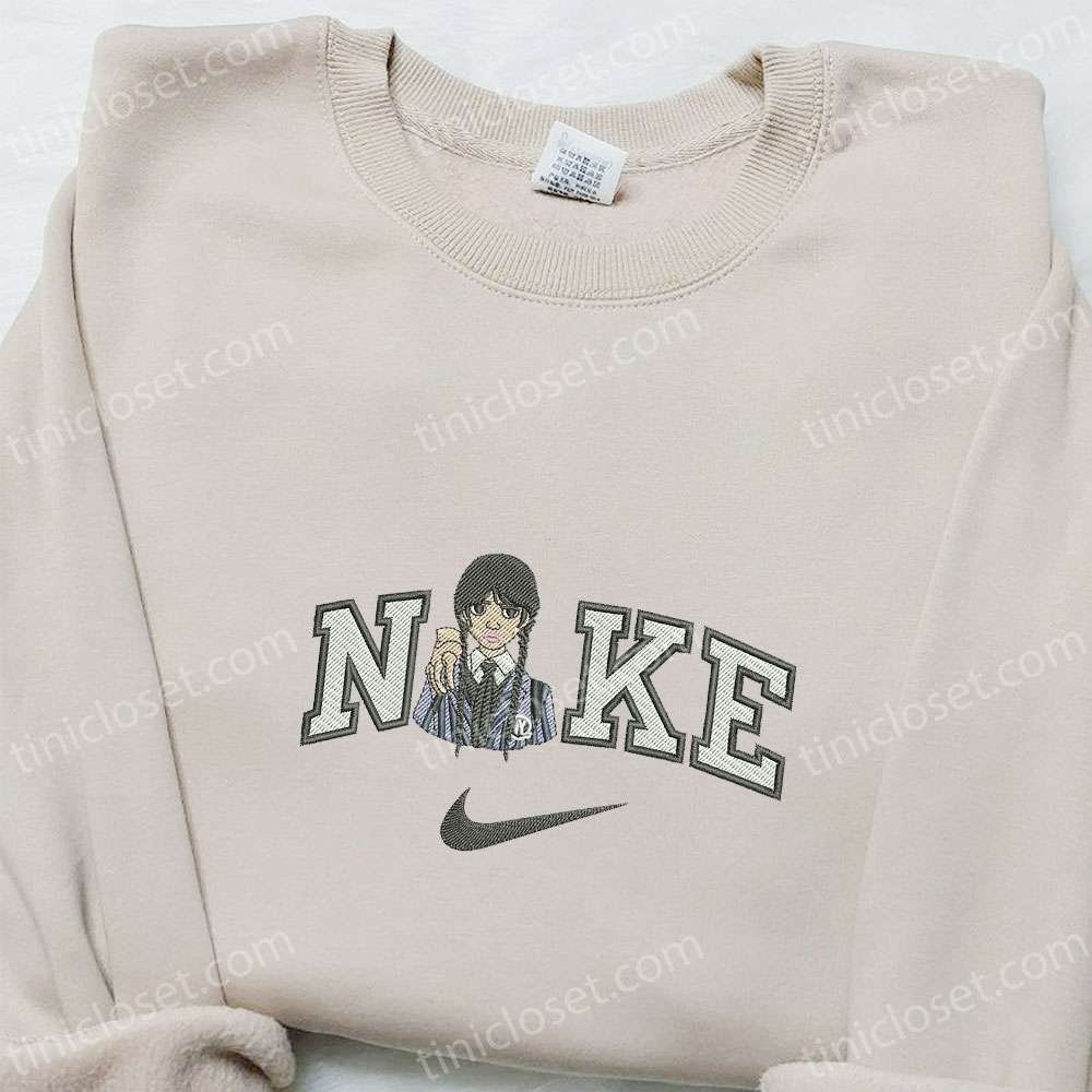Wednesday Addams And Thing X Nike Embroidered Shirt, Nike Inspired Embroidered Hoodie, Best Gifts For Family