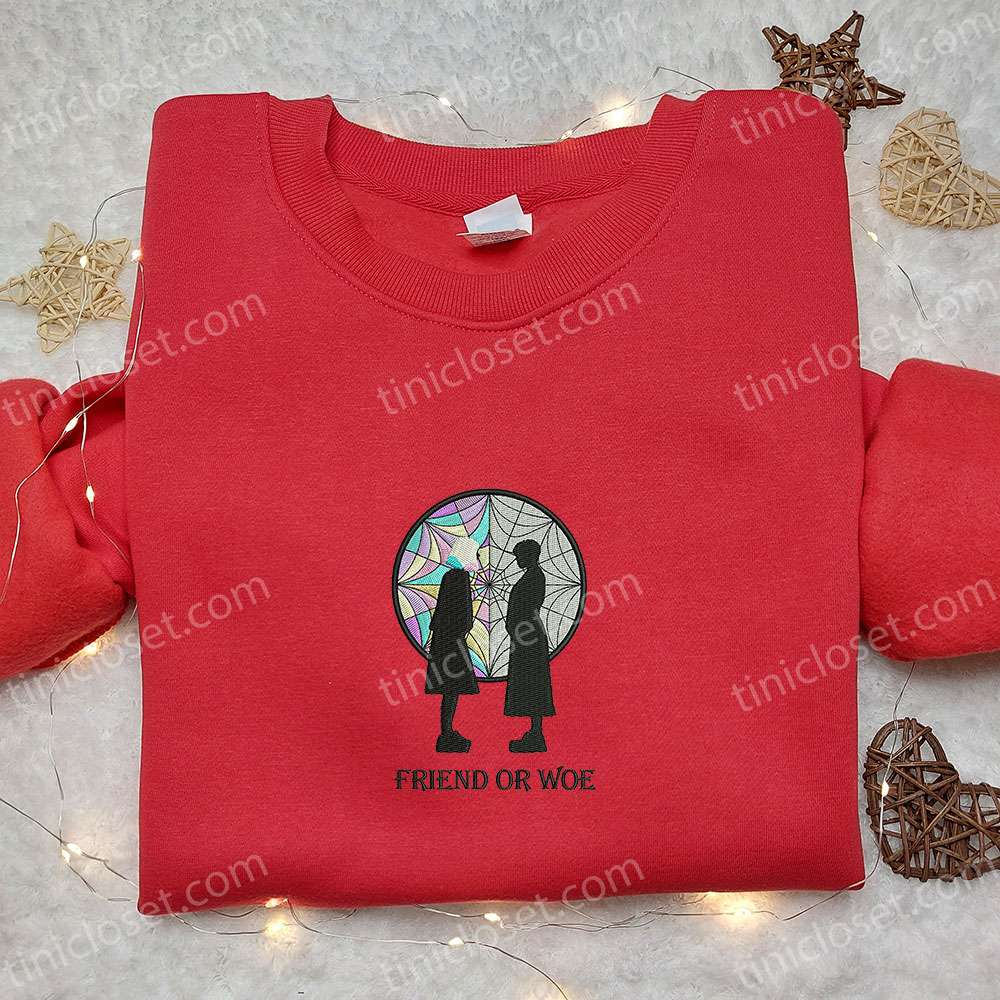 Wednesday Friend Or Hoe Embroidered Sweatshirt, Movie Embroidered Shirt, Best Gifts For Friends