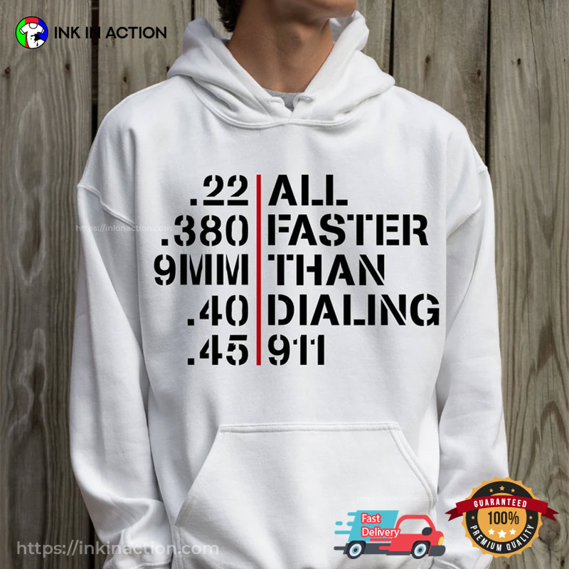 All Faster Than Calling 911, .22, .380, 9mm, .40, .45 Guns Veterans Day Shirt