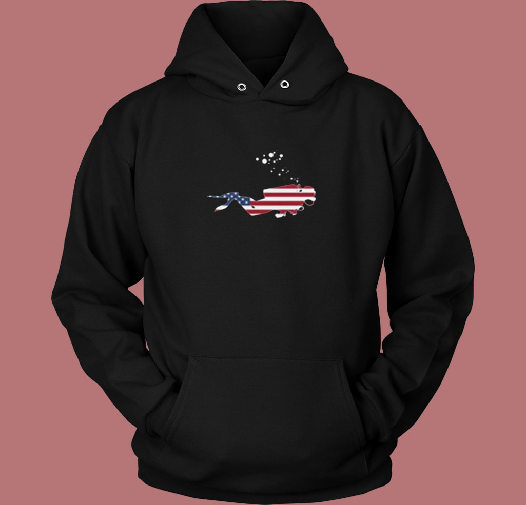 American Flag Usa Free Diving Scuba Diver Vintage Hoodie