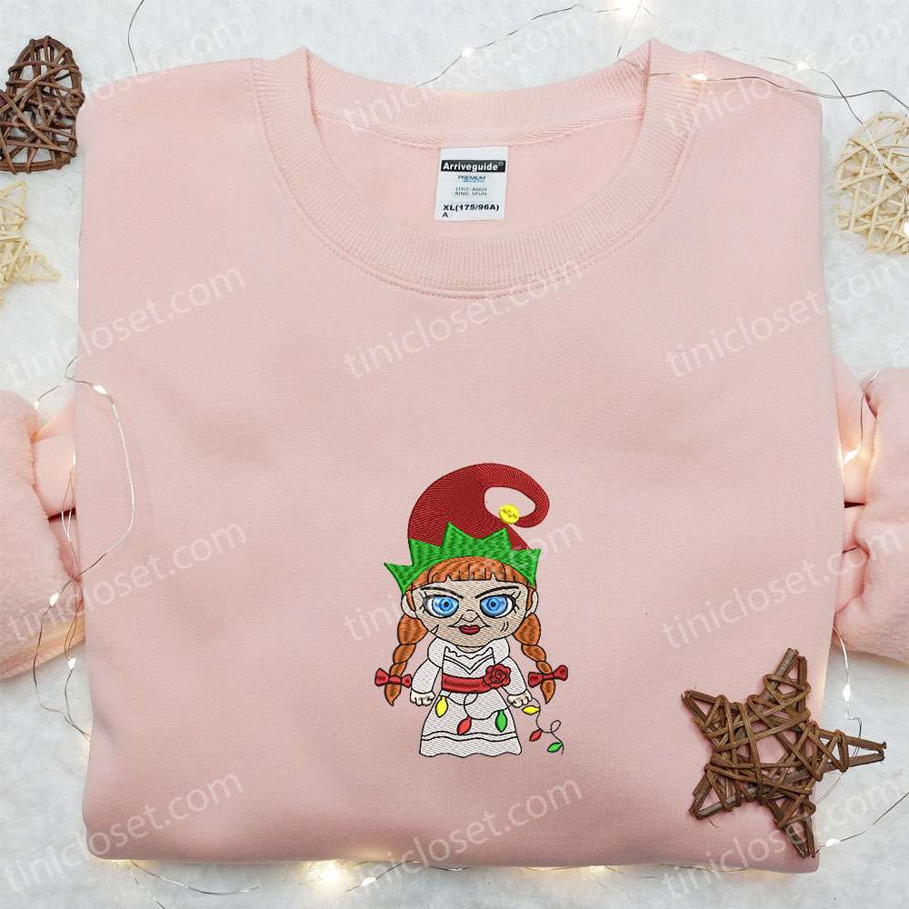 Annabelle Elf Embroidered Shirt, Christmas Embroidered Hoodie, Halloween Embroidered Sweatshirt
