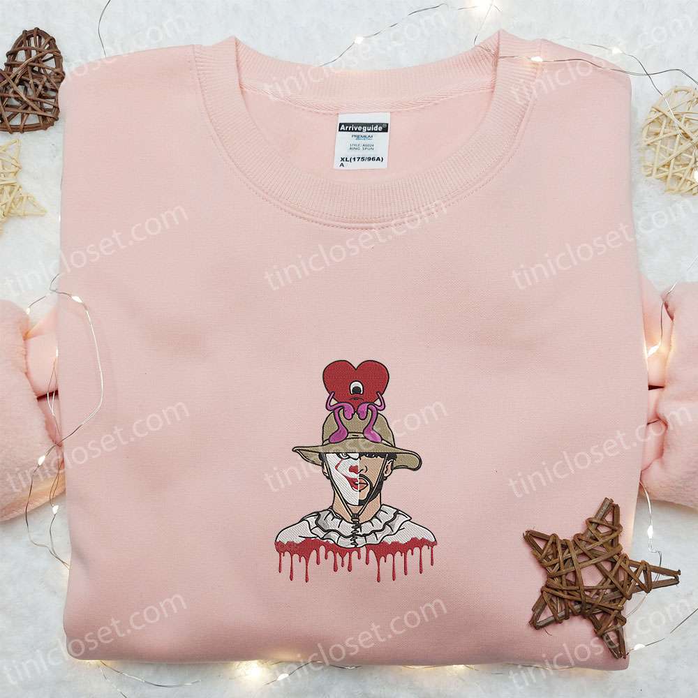 Bad Bunny Pennywise Embroidered Sweatshirt, Horror Movie Embroidered Hoodie, Halloween Embroidered Shirt