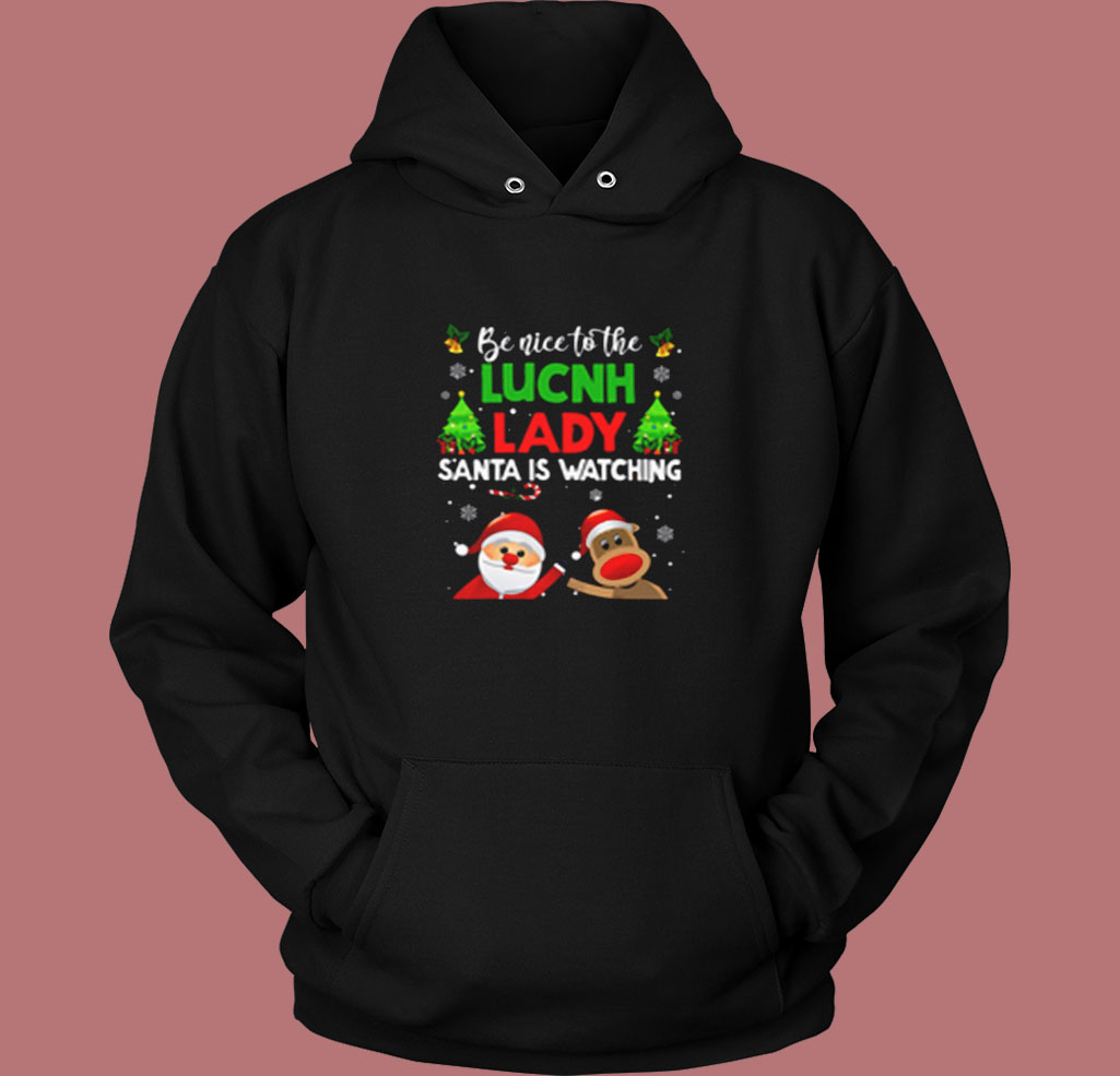Be Nice To The Lunch Lady Santa Is Watching Vintage Hoodie