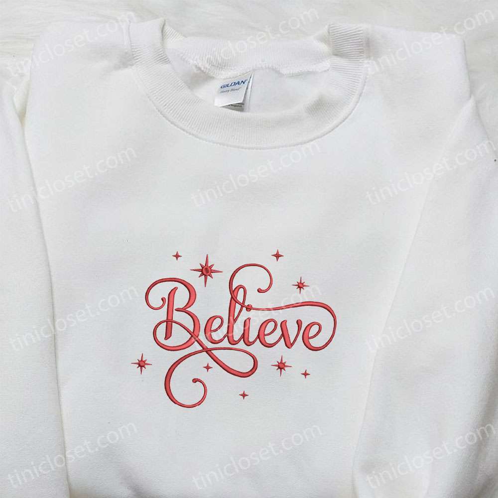 Believe Embroidered Shirt, Christmas Embroidered Hoodie, Best Gifts For Family