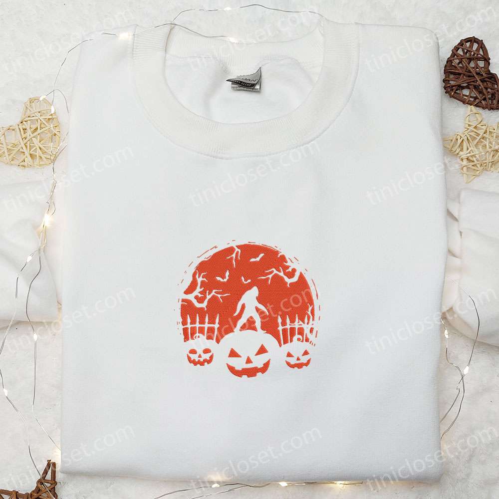 Big Foot Halloween Embroidered Sweatshirt, Halloween Embroidered Hoodie, Best Gifts For Family