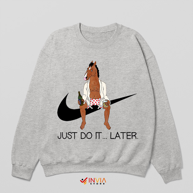 Bojack Horseman Just Do It Later Sport Grey Sweatshirt Meme Nike