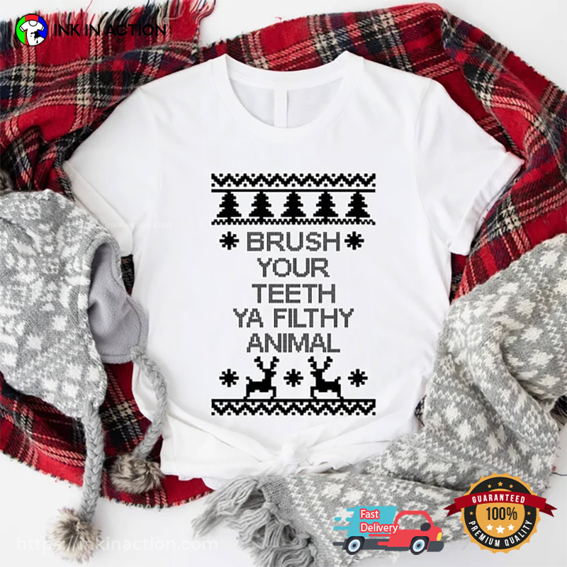 Brush Your Teeth Ya Filthy Animal Funny Xmas Dentist Shirt