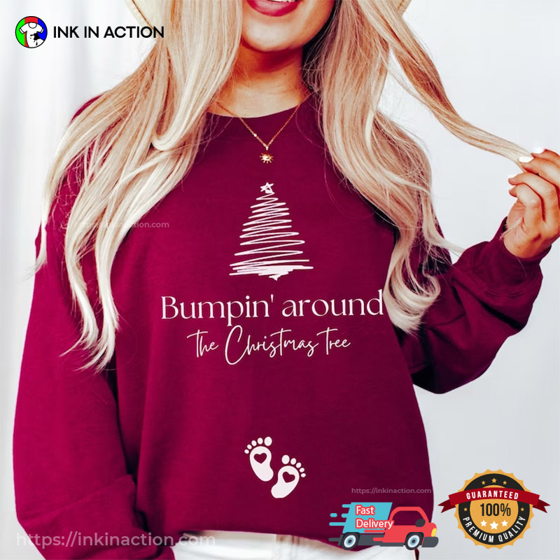 Bumpin Around The Christmas Tree Xmas Pregnancy Announcement Shirt