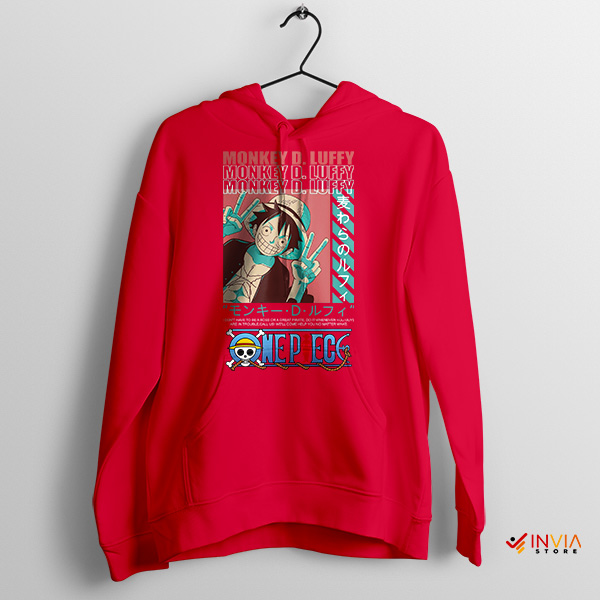 Captain Luffy’s Peaceful Vibe Hand Sign Red Hoodie