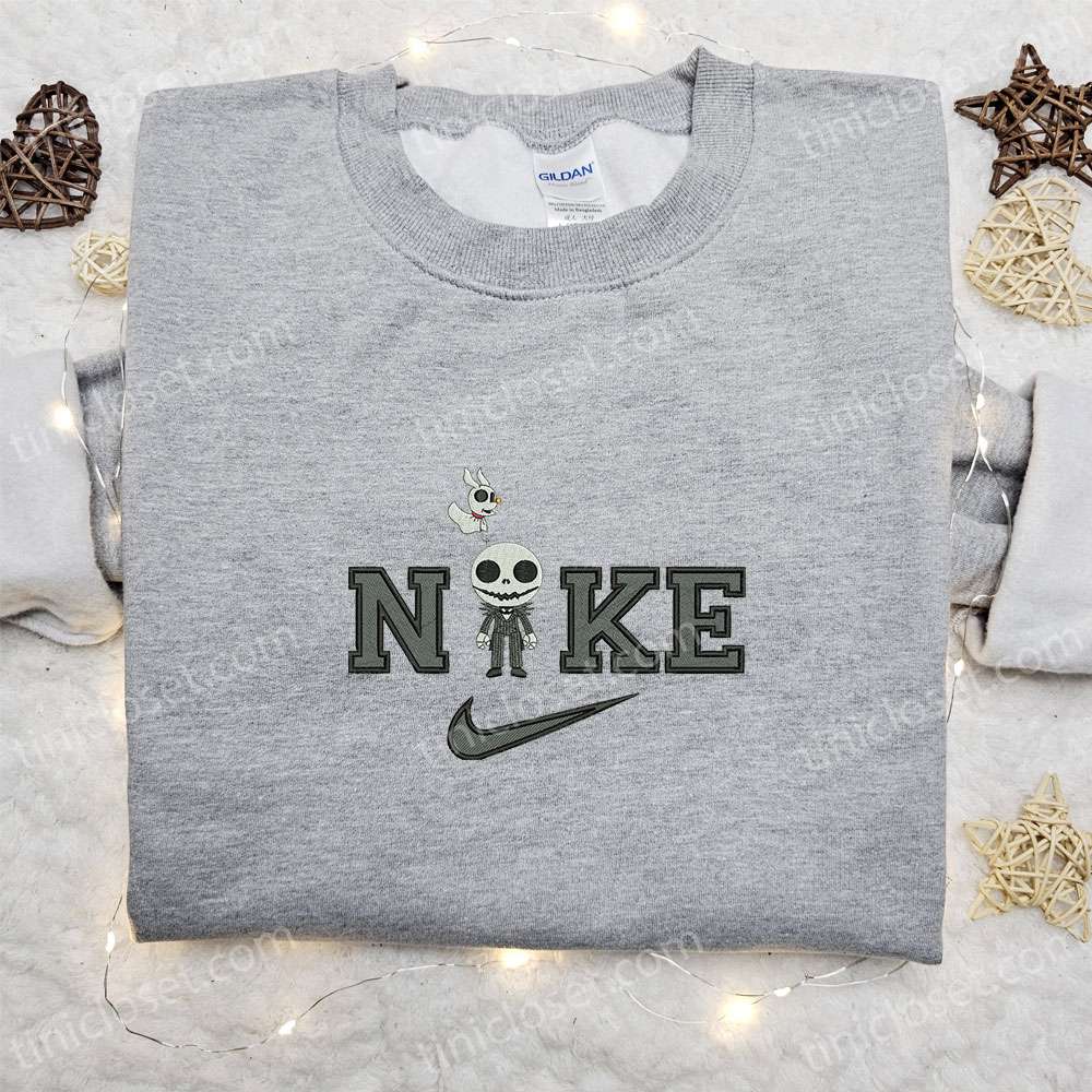 Chibi Jack Skellington And Zero X Nike Embroidered Shirt, The Nightmare Before Christmas Cartoon Embroidered Hoodie, Best Gift Ideas