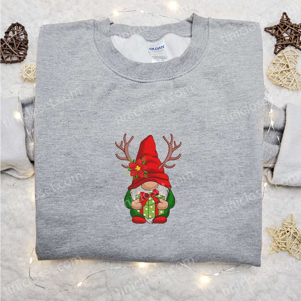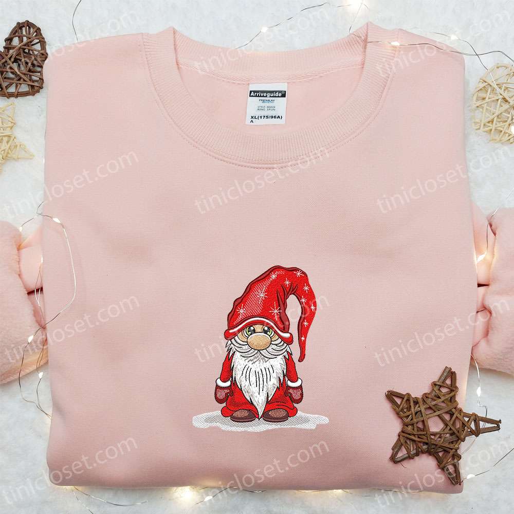 Christmas Cute Gnome Embroidered T-shirt, Christmas Embroidered Sweatshirt, Best Christmas Gift Ideas For Family