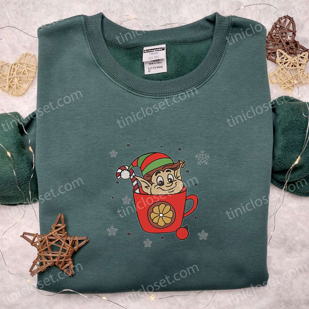 Christmas Elf Gnome Cup Embroidered Hoodie, Christmas Embroidered T-shirt, Best Christmas Gift Ideas