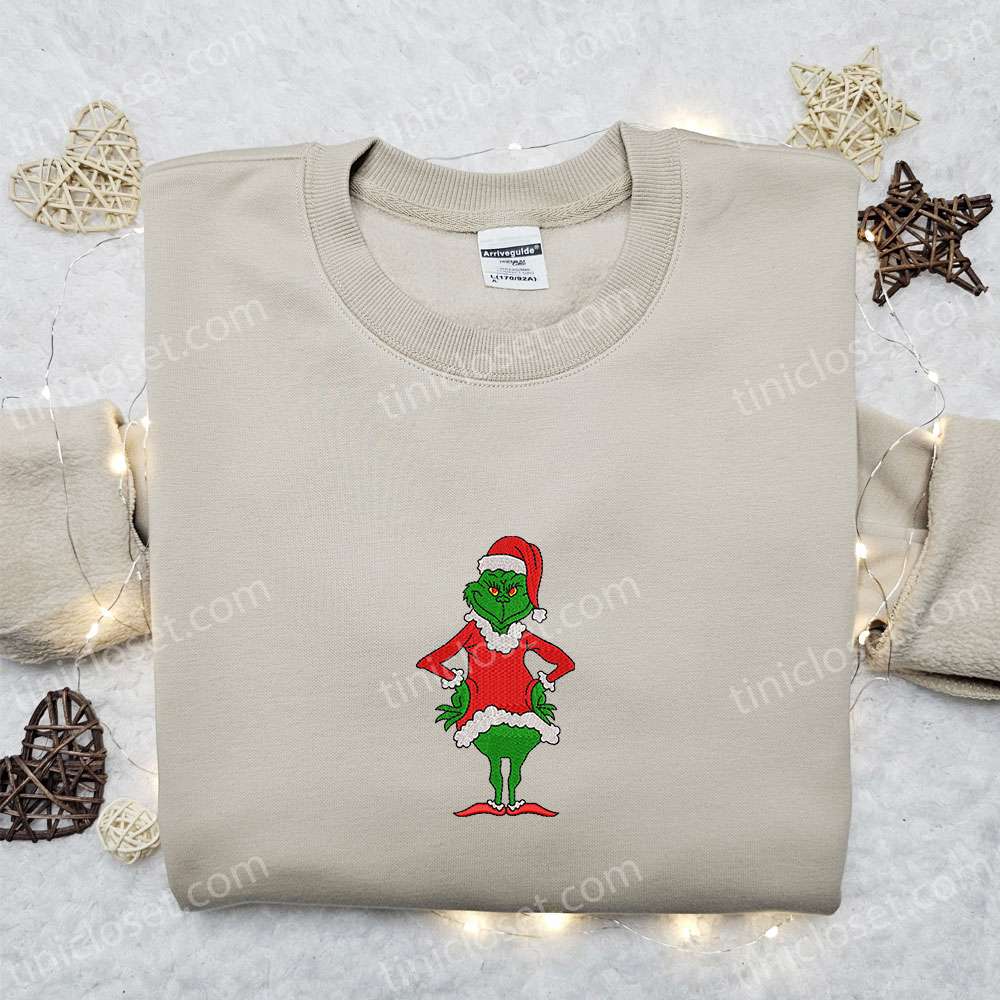 Christmas Naughty Grinch Embroidered Hoodie, Christmas Embroidered Shirt, Best Christmas Gift Ideas