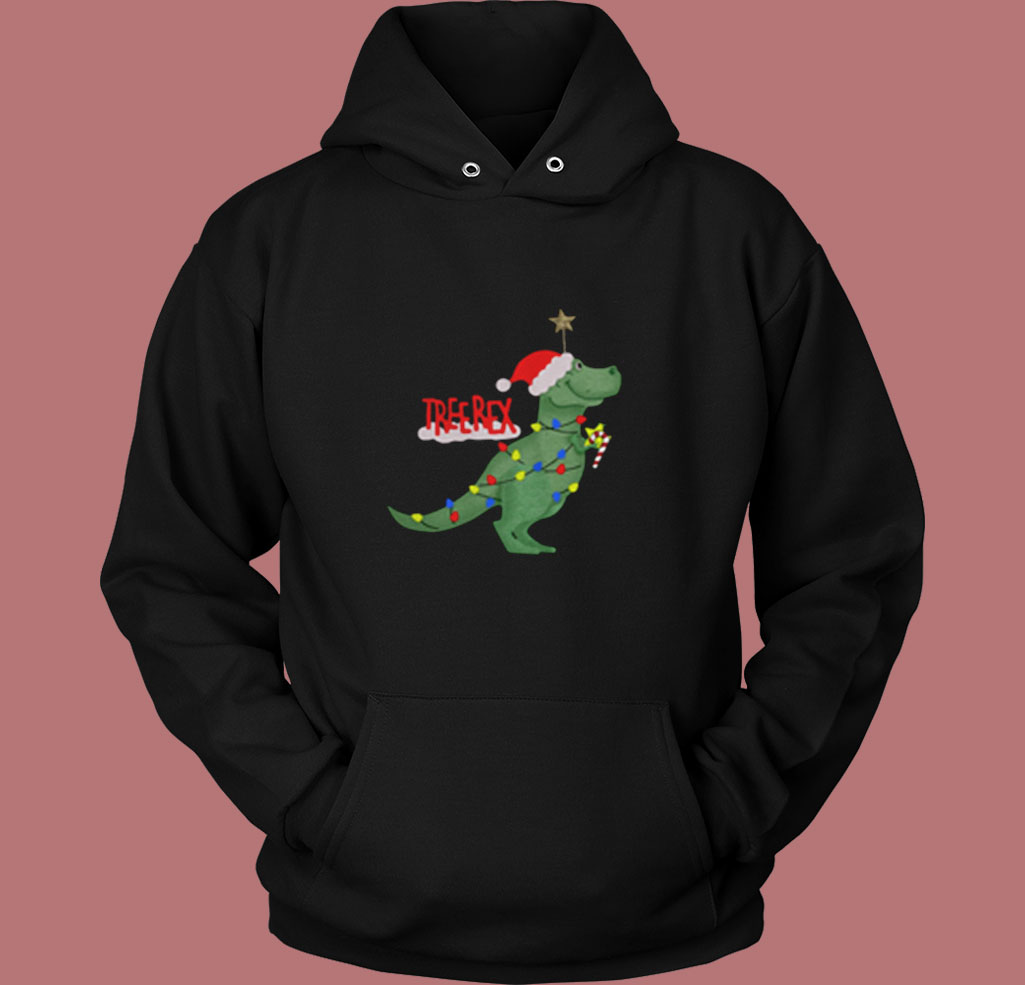 Christmas Tree T Rex Funny Parody Vintage Hoodie