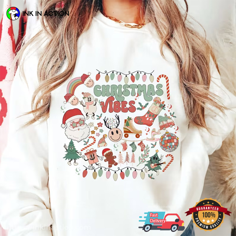 Christmas Vibes 2023 Retro Christmas Season Comfort Colors Tee