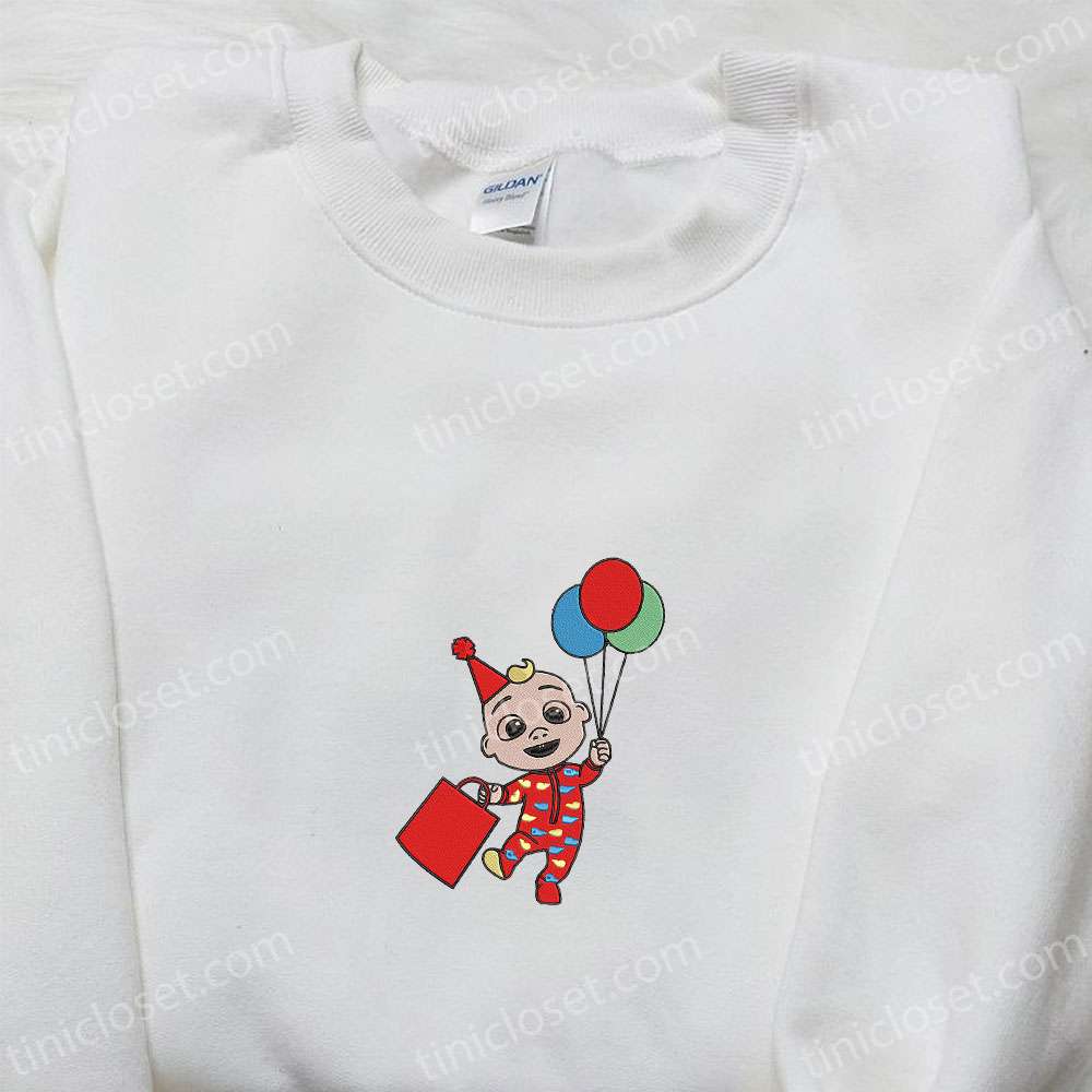 Cocomelon Baby Birthday With Balloons Embroidered Shirt, Cartoon Embroidered Hoodie, Best Gifts For Family