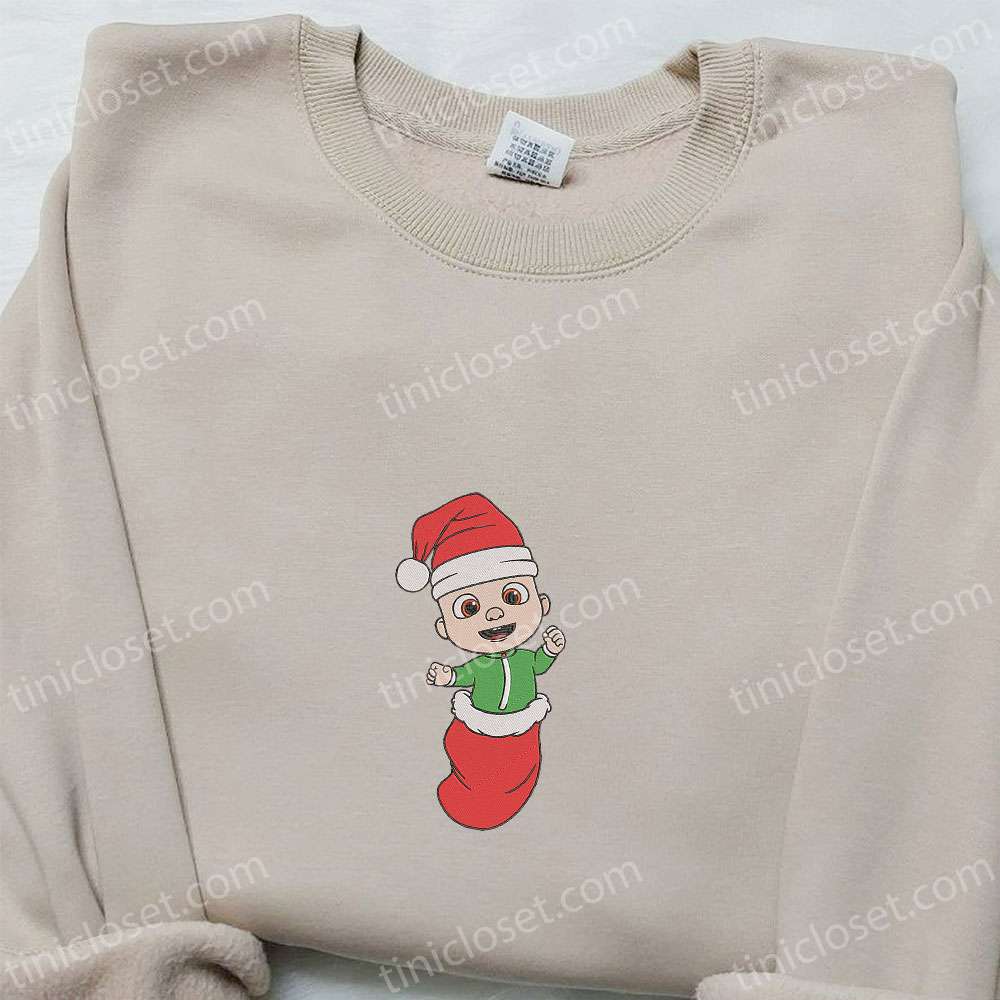 Cocomelon Baby In Christmas Sock Embroidered Shirt, Cartoon Embroidered Hoodie, Best Christmas Gifts For Family