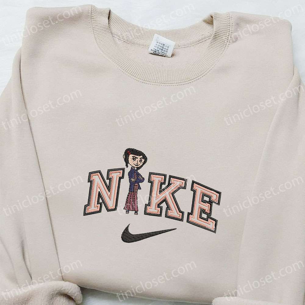 Coraline X Nike Embroidered Shirt, Cartoon Embroidered Hoodie, Nike Inspired Embroidered Sweatshirt