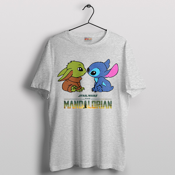 Cute Baby Yoda And Stitch Cartoon Sport Grey T-shirt