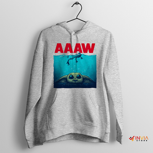 Cute Baby Yoda Cartoon Meme Jaws Sport Grey Hoodie