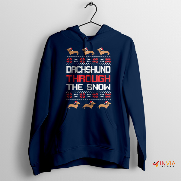 Dachshund Through The Snow Funny Navy Hoodie Christmas