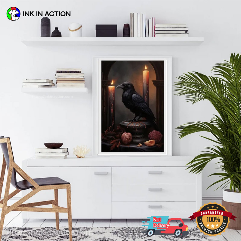 Dark Gothic Raven With Candles Witchy Wall Decor