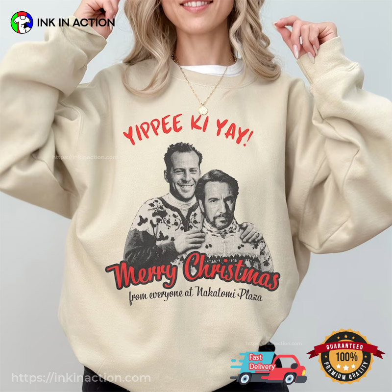 Die Hard Yippee Ki Yay Bruce Willis Nakatomi Plaza Funny Christmas Tee