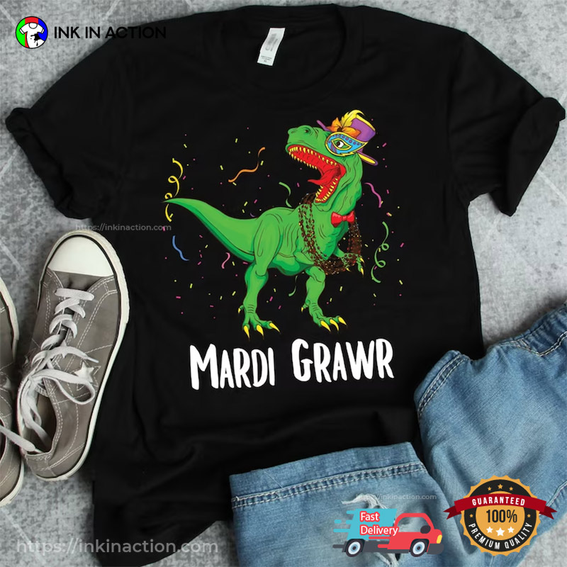 Dinosaur Mardi Grawr Funny Mardi Gra Tuesday T-shirt