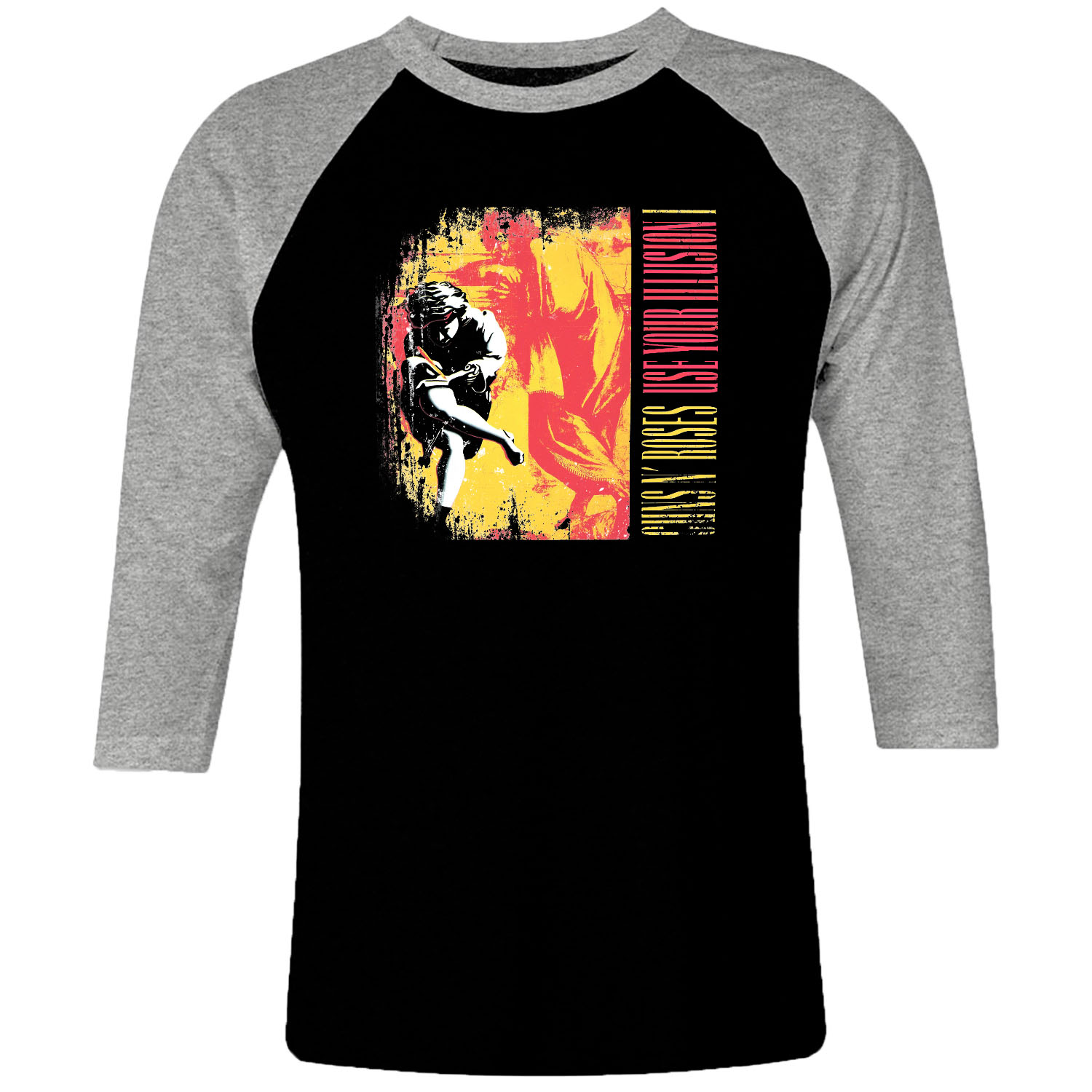 1 I 045 Guns N Roses Use Your Illusion I Gnr Raglan T Shirt 3 4 Sleeve Rock Band Metal Retro Punk Vintage Concert Cotton Design Handmade Logo New