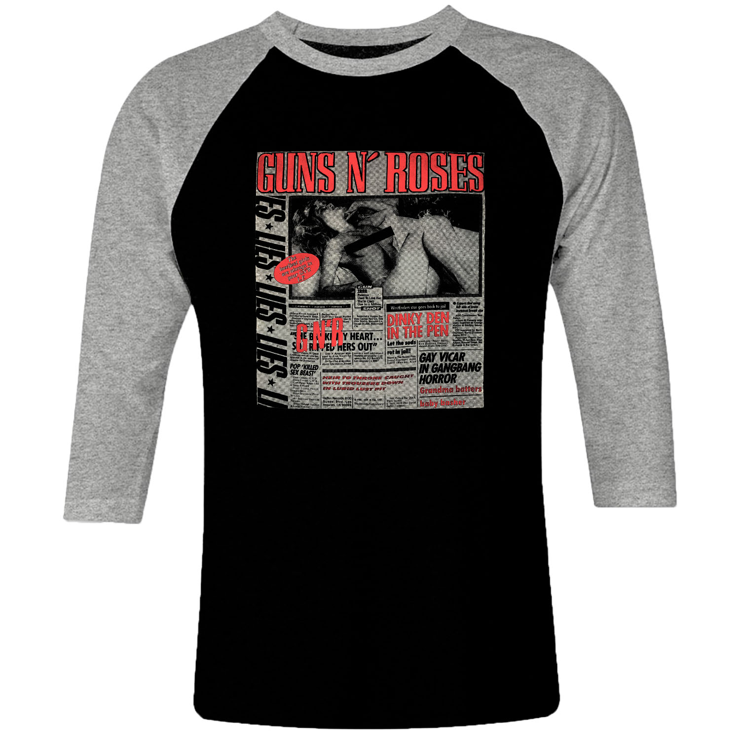 1 I 043 Guns N Roses Raglan T Shirt 3 4 Sleeve Rock Band Metal Retro Punk Vintage Concert Cotton Design Handmade Logo New