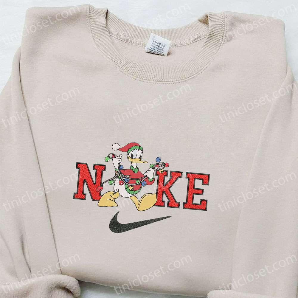 Disney Donald Duck Christmas Light X Nike Christmas Embroidered Sweatshirt, Christmas Embroidered Shirt, Best Christmas Gift Ideas