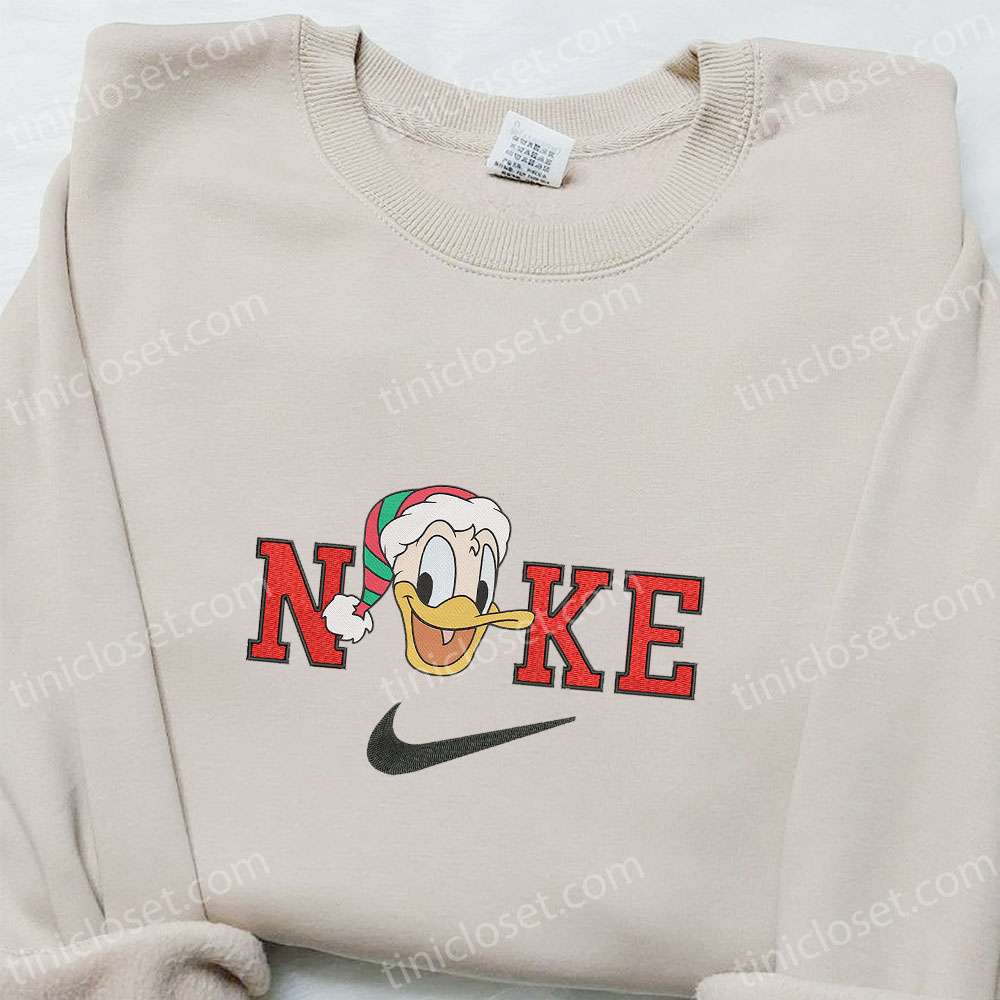 Disney Donald Duck Xmas Hat X Nike Christmas Embroidered Sweatshirt, Cartoon Christmas Embroidered Shirt, Best Christmas Gift Ideas