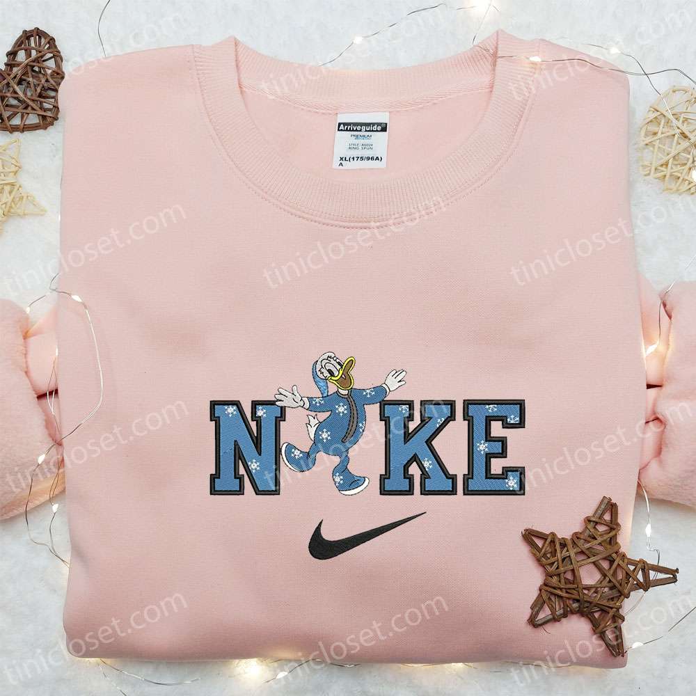 Donald Duck Santa X Nike Embroidered Shirt, Disney Characters Embroidered Hoodie, Christmas Embroidered Sweatshirt