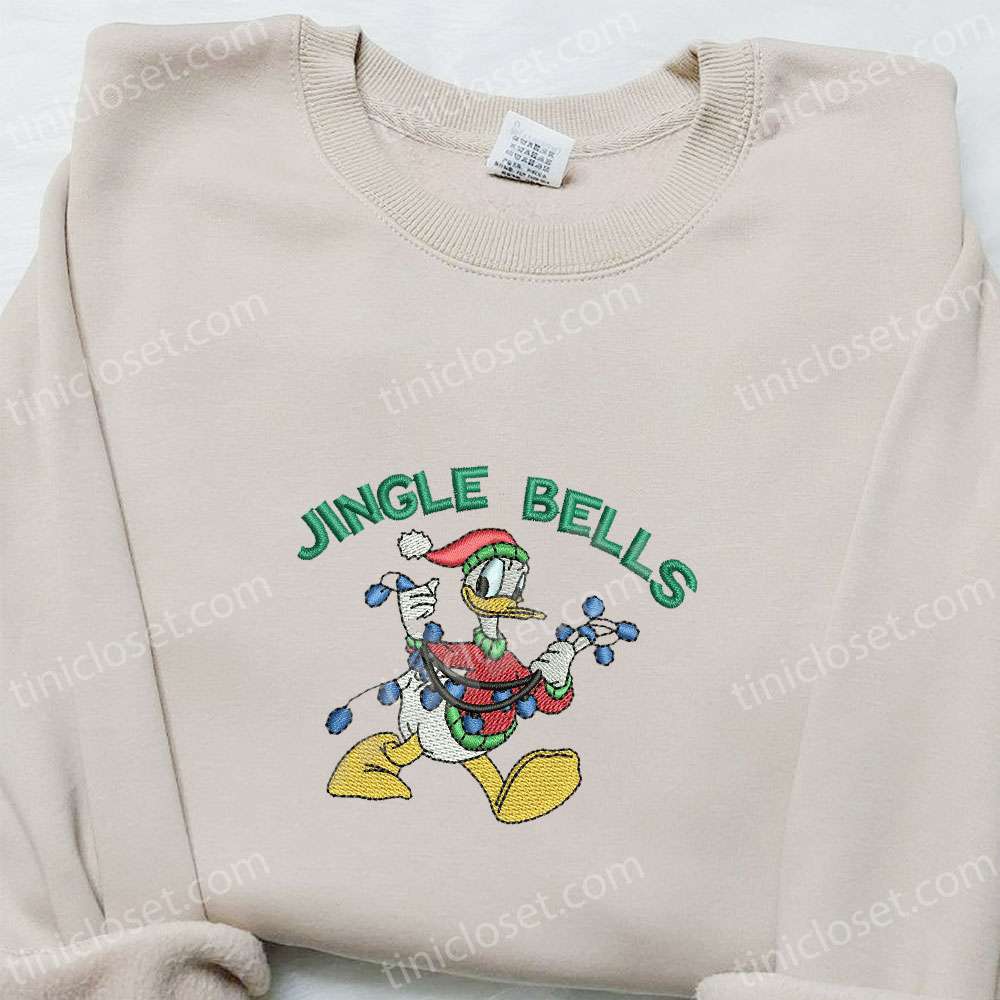 Donald Duck Jingle Bells Embroidered Shirt, Disney Christmas Embroidered Shirt, Best Christmas Gift Ideas
