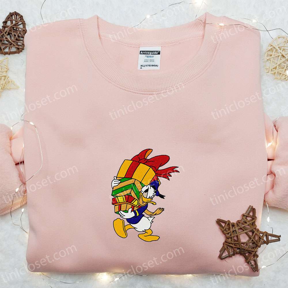 Donald Duck With Christmas Gifts Embroidered Sweatshirt, Disney Christmas Embroidered Hoodie, Best Christmas Gift Ideas