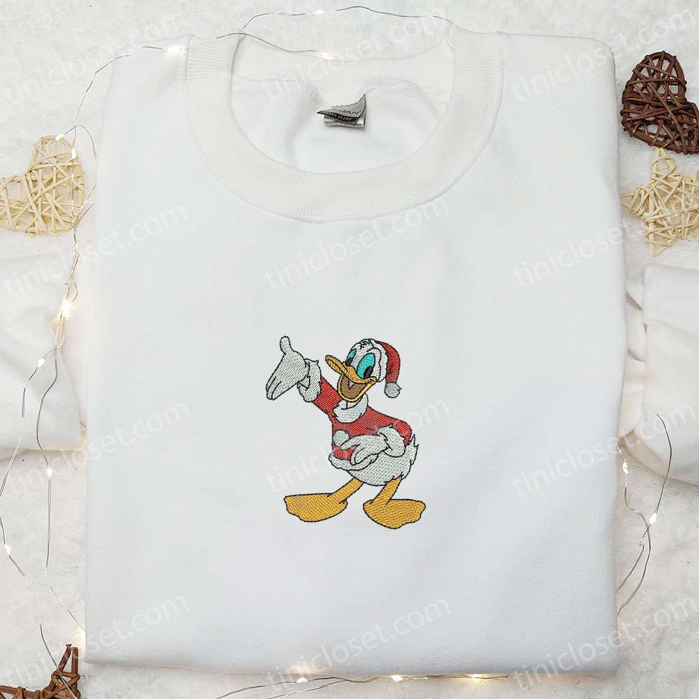 Donald Duck Xmas Embroidered T-shirt, Disney Christmas Embroidered T-shirt, Best Christmas Gift Ideas