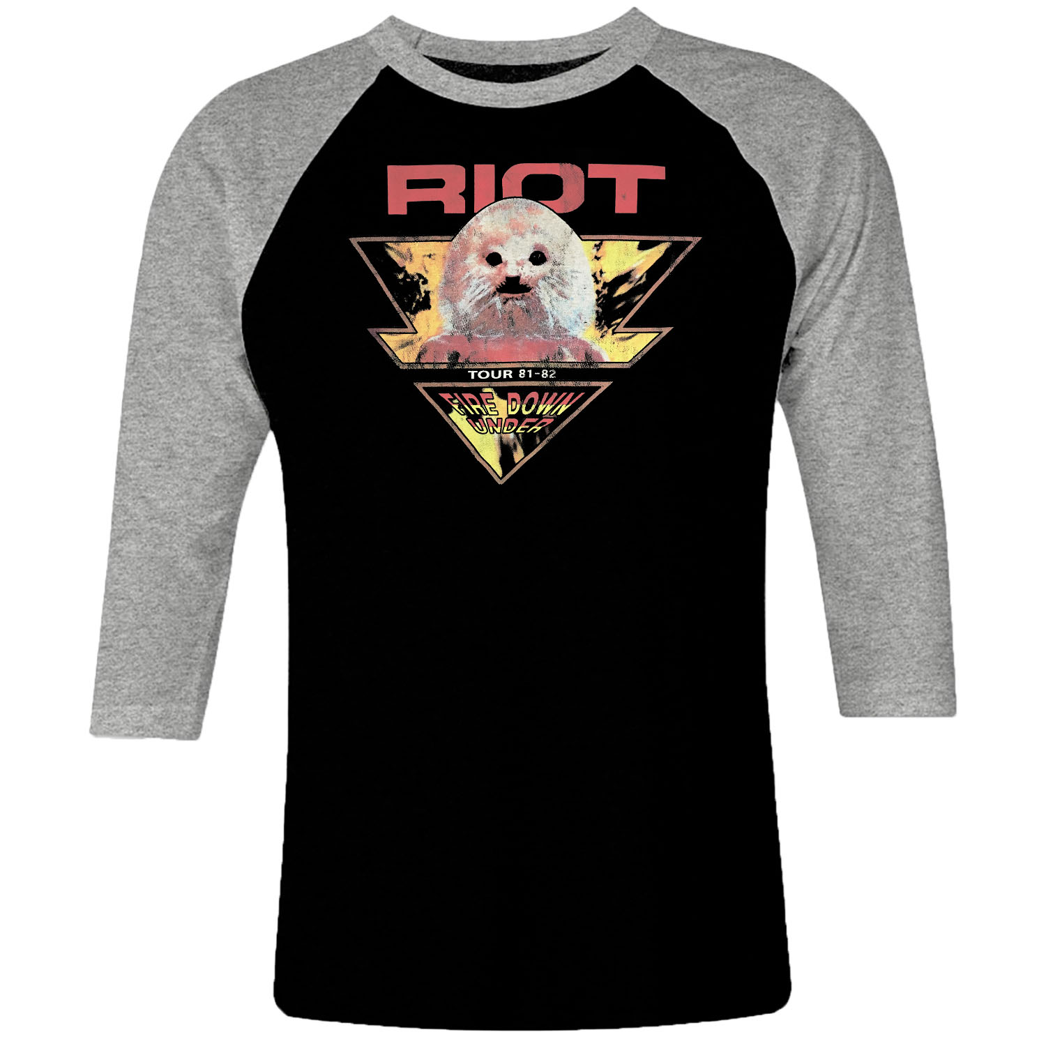1 I 094 Riot Usa 81 82 Fire Down Raglan T Shirt 3 4 Sleeve Rock Band Metal Retro Punk Vintage Concert Cotton Design Handmade Logo New
