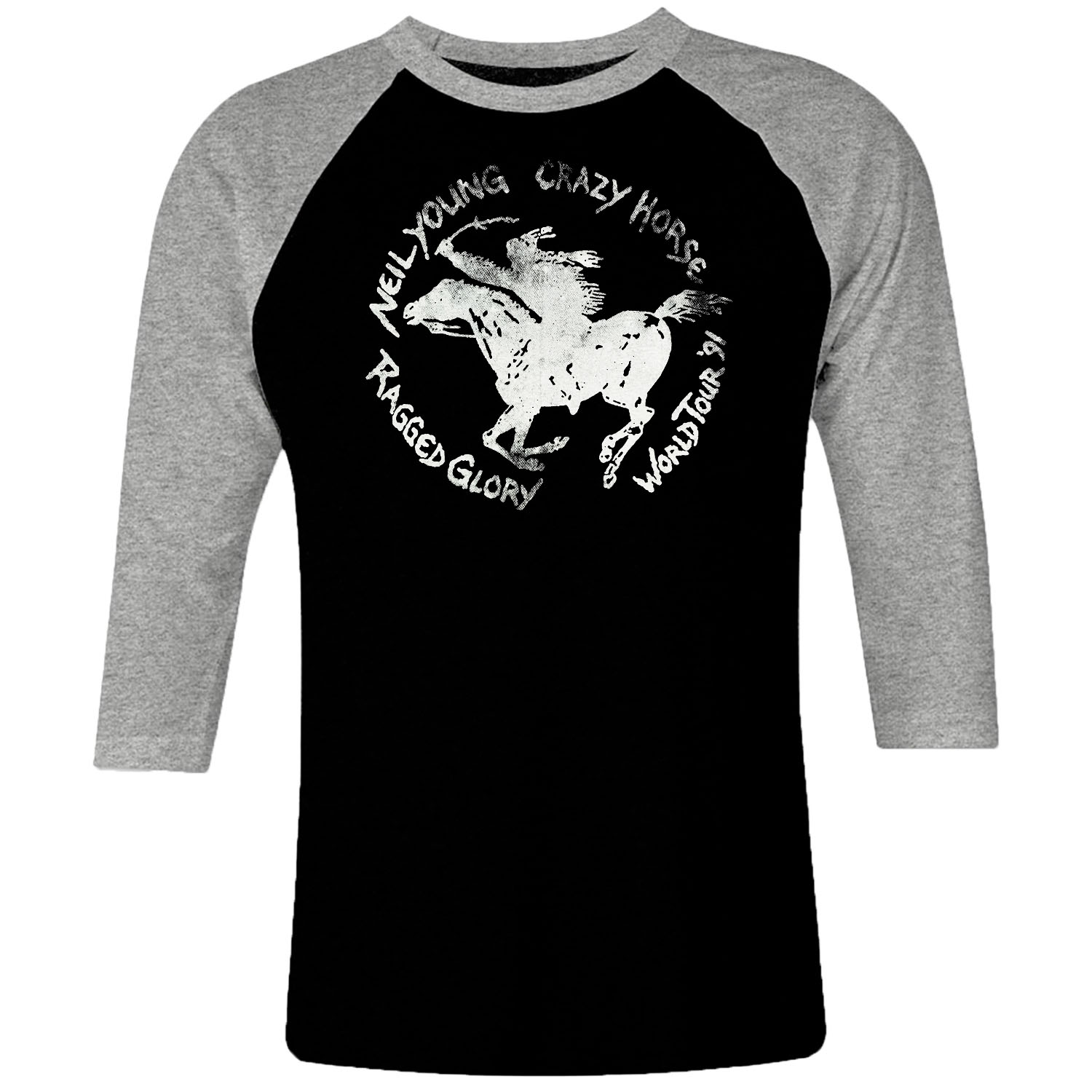 1 I 096 Neil Young Crazy Horse World 91 Raglan T Shirt 3 4 Sleeve Rock Band Metal Retro Punk Vintage Concert Cotton Design Handmade Logo New