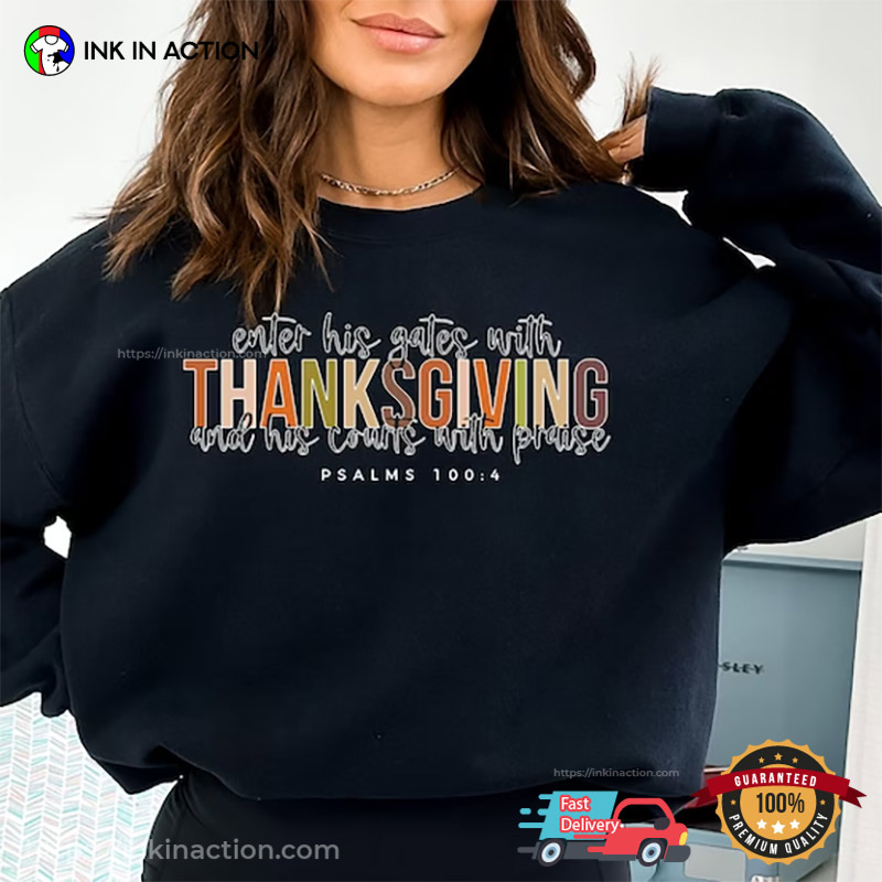 Enter His Gates With Thanksgiving Funny Shirt Quotes