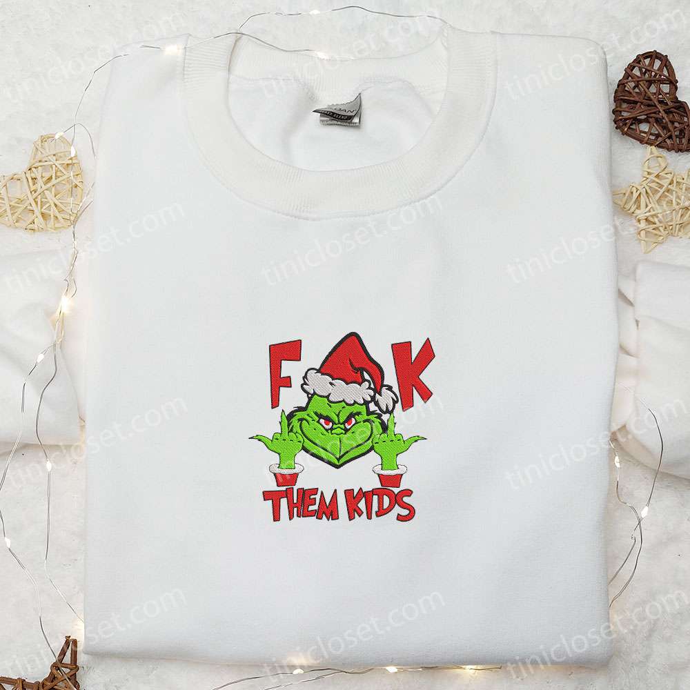 F Them Kids Grinch Embroidered Shirt, Movie Christmas Embroidered T-shirt, Best Christmas Gift Ideas
