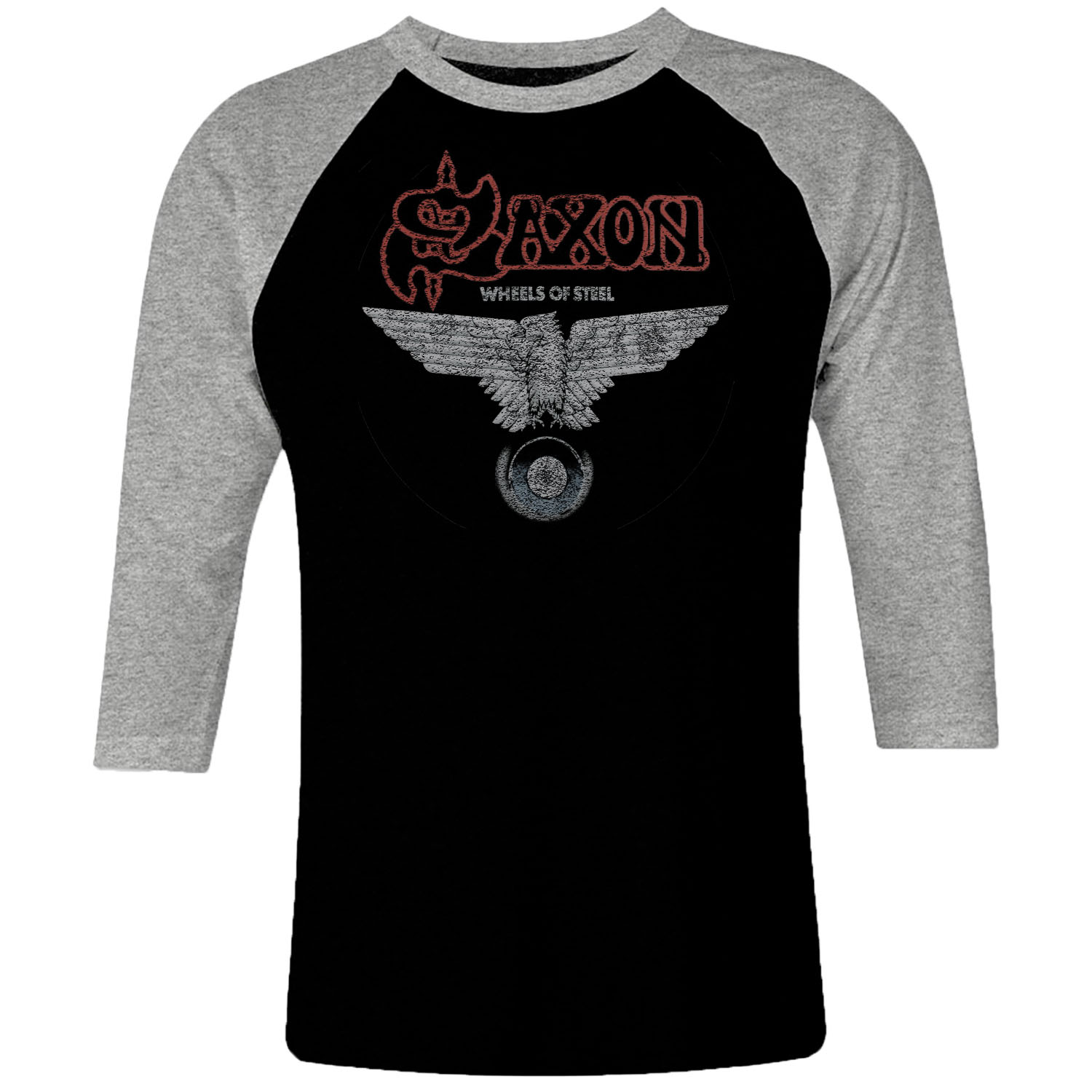 1 I 191 Saxons Raglan T Shirt 3 4 Sleeve Rock Band Metal Retro Punk Vintage Concert Cotton Design Handmade Logo New