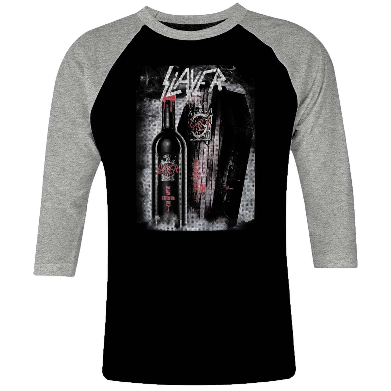 1 I 196 Slayer Reign In Blood Raglan T Shirt 3 4 Sleeve Rock Band Metal Retro Punk Vintage Concert Cotton Design Handmade Logo New