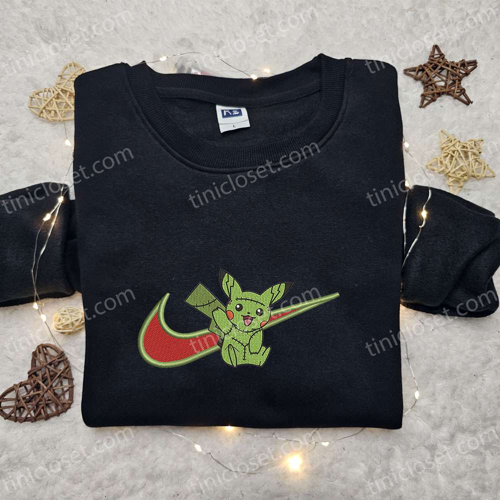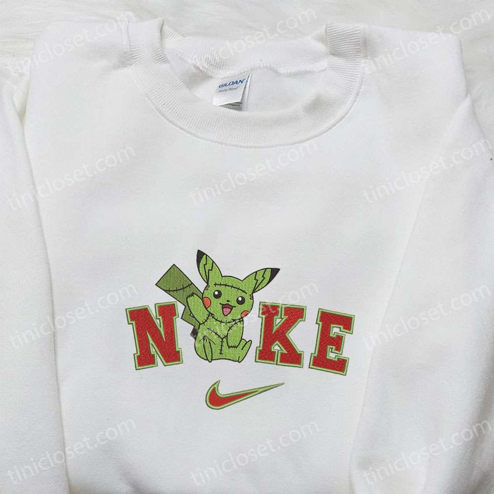 Frankenstein Pikachu X Nike Embroidered Sweatshirt, Pokemon Embroidered Shirt, Funny Cute Embroidered Hoodie