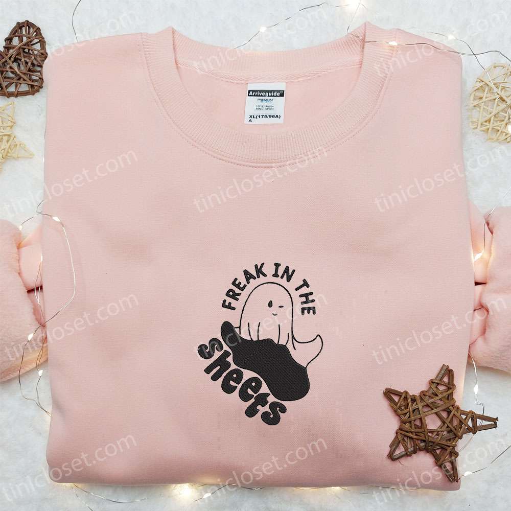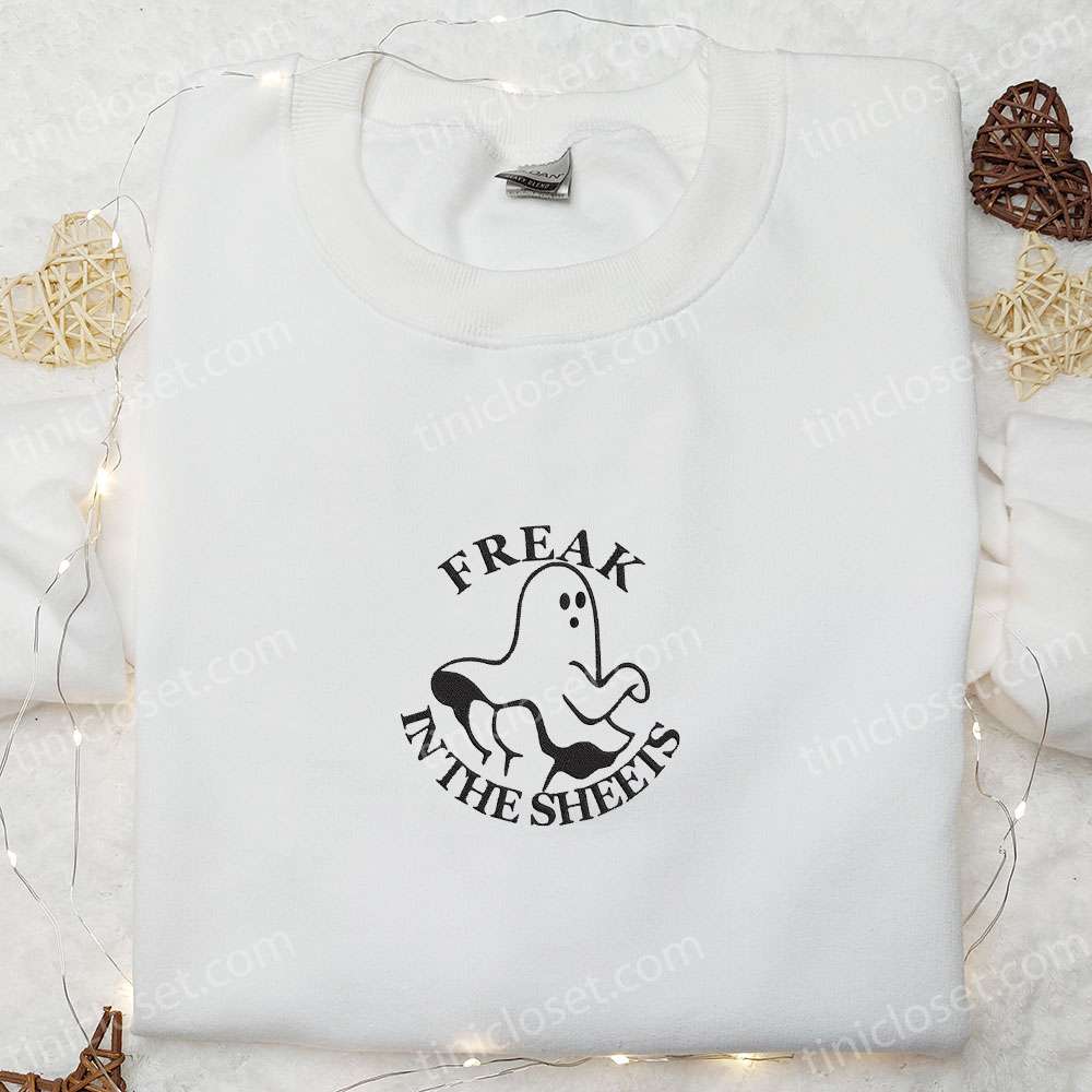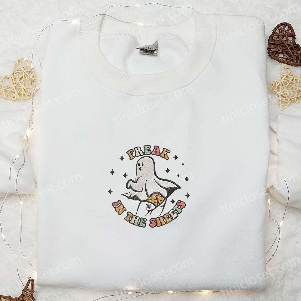 Freak In The Sheets Ghost Embroidered Sweatshirt, Cute Halloween Embroidered Hoodie, Best Halloween Gift Ideas