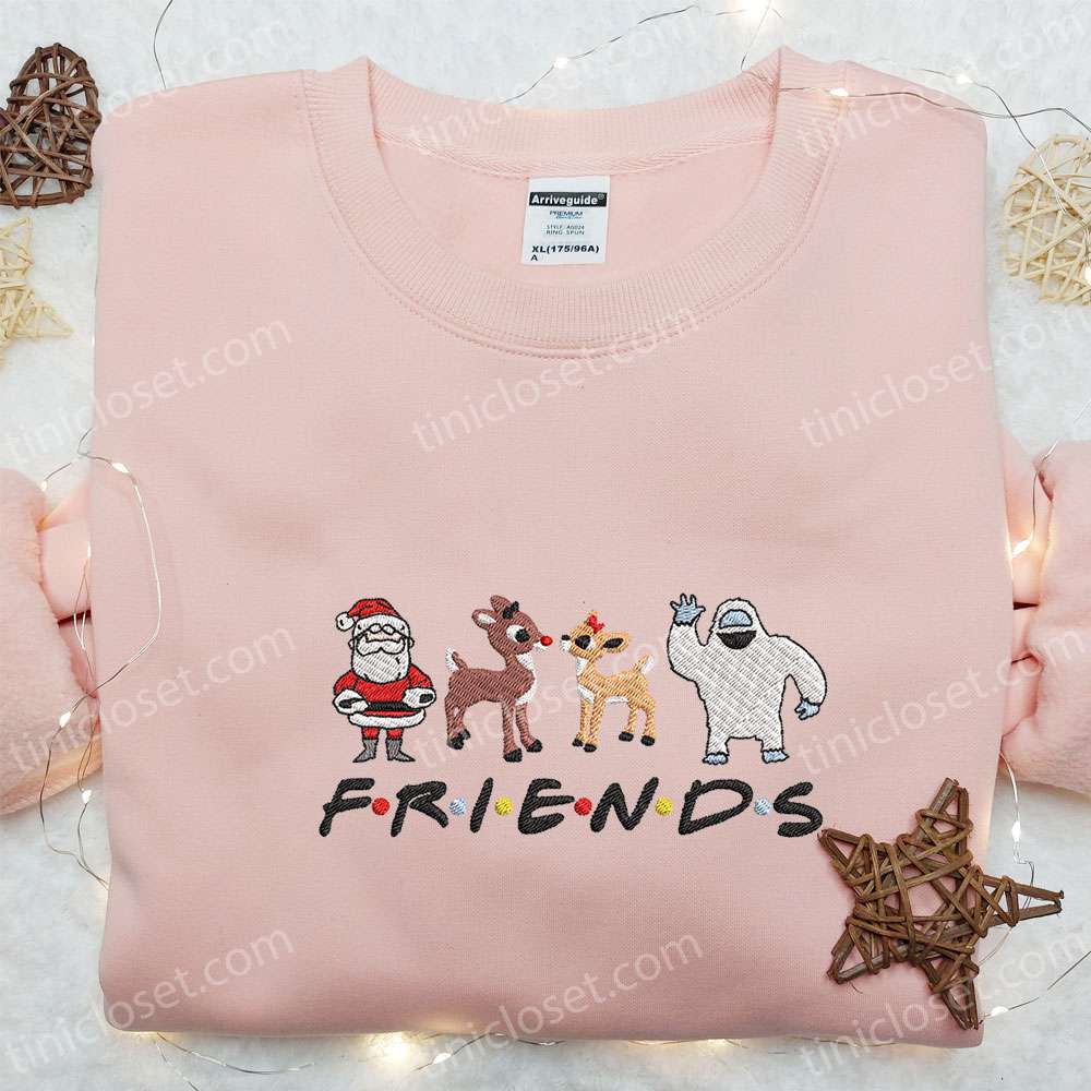 Friends Merry Christmas Rudolph Red Nose Embroidered Sweatshirt, Cartoon Christmas Embroidered Shirt, Best Christmas Gift Ideas For Friends