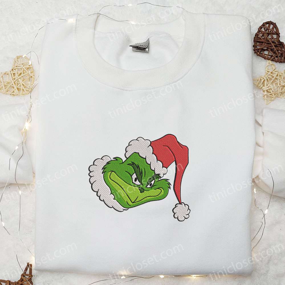 Funny Grinch Santa Hat Embroidered Shirt, Movie Christmas Embroidered Shirt, Best Christmas Gift Ideas