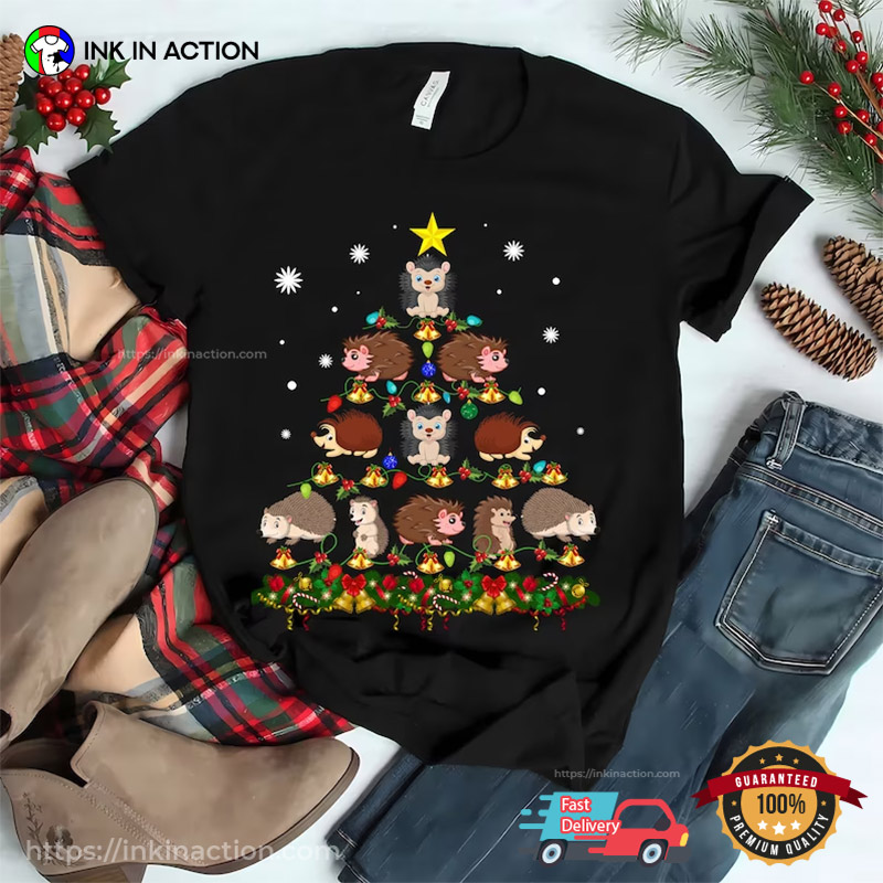 Funny Hedgehogs Christmas Tree Cute Hedgehog T-shirt