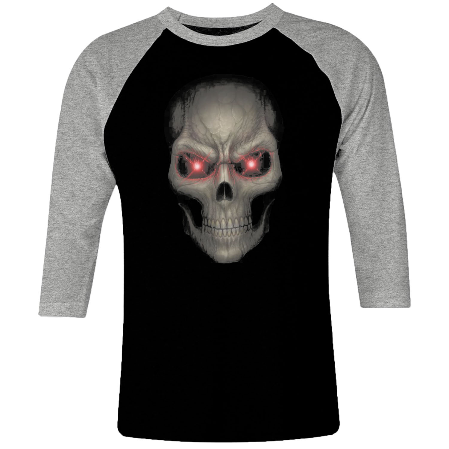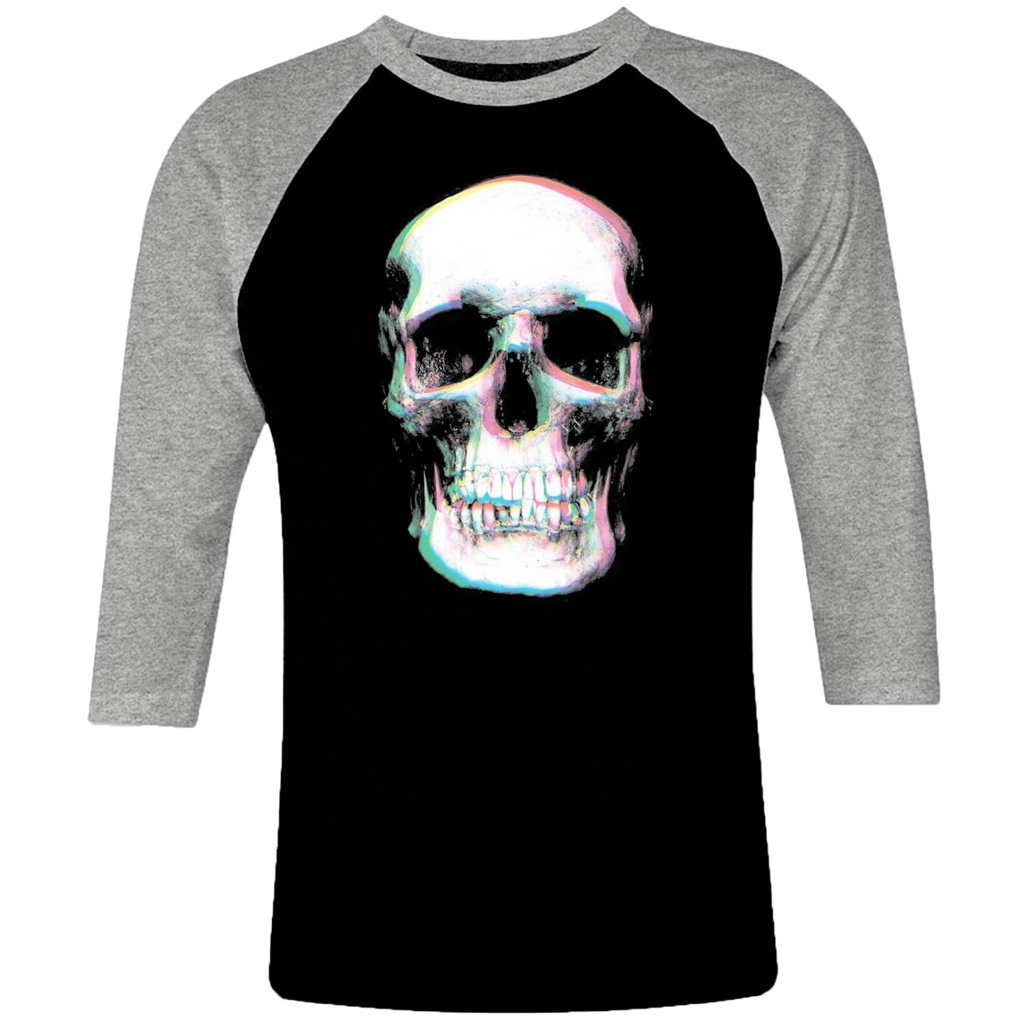 1 I 234 Skull Head Raglan T Shirt 3 4 Sleeve Rock Band Metal Retro Punk Vintage Concert Cotton Design Handmade Logo New